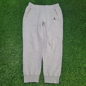 Nike Air Jordan Athletic Tapered Joggers Mens XL Heather Grey Tech Zipper Pants Cuffed Ankle Relaxed Fit Embroidered Logo Zipper Pockets Zipped Pockets Utility Style