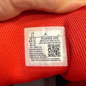 Stylish high-top sneakers featuring a black and gray design with striking red accents. Perfect for all types of wear. Only worn once by my teenage son and then he outgrew them.