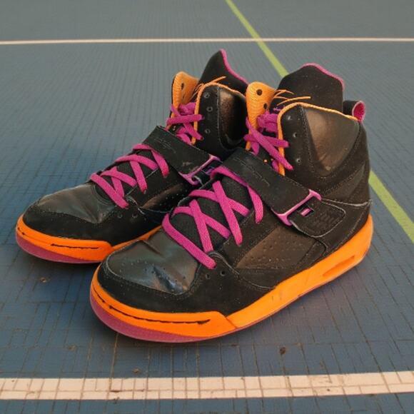 Nike Air Jordan Flight 45 Athletic Sneakers - Black/Orange/Pink - Youth 7