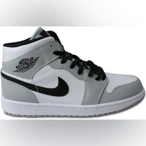 Chic high-tops with a bold black swoosh. White and gray leather design. Perfect for casual wear.