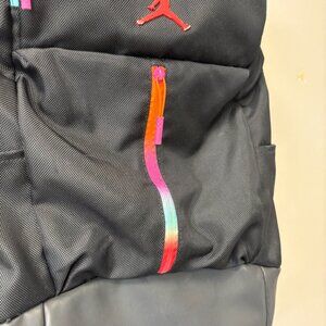 Carry your gear in style with this Nike Air Jordan Hi-Vis Fluid Backpack. Designed with bold colorful accents and the iconic Jumpman logo, it blends function and streetwear appeal. Perfect for school, gym, or everyday use.