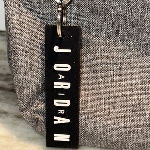 For Sale is a Brand New with Tags Nike Air Jordan Mini Backpack in Carbon Heather Gray. This hard to find bag is based on the classic Nike backpack. Has adjustable padded straps that extend to 27", padded back, hanging loop on top, exterior zippered pocket and an exterior mesh water bottle pocket. Features the Jumpman logo in the center and says JORDAN around the exterior top. Holds 10 liters. Also has an Air Jordan Logo silicone Keychain / zipper pull. Comes from a Smoke Free and Pet Free Home.