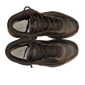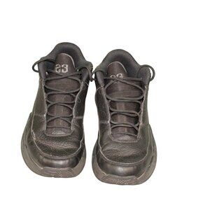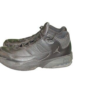 These Nike Air Jordan Max Aura 3 sneakers in men’s size 8 feature a sleek triple black design with premium leather uppers and rubber outsoles for durability. Perfect for both athletic and casual wear, these mid-top sneakers offer comfort and style with cushioned soles and lace-up closures