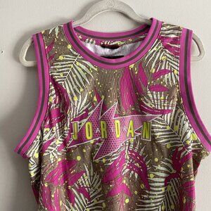Nike Air Jordan Men SZ M "Wings" Pink/Green Floral Loose Fit Jersey