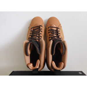 The Nike Air Jordan MVP Flax Brown-Baroque Brown-Black Men's Sneakers in size 9 or 9.5 are a stylish and versatile choice for activewear, casual outings, or workwear. Featuring a comfortable lace-up closure and a mid-top shoe shaft style, these sneakers offer a comfortable fit for all-day wear. The Baroque Brown-Black color scheme with a suede upper and rubber outsole adds a touch of sophistication to the design. Perfect for various seasons and activities, these Jordan sneakers are a must-have for any man's wardrobe, blending style and functionality seamlessly.