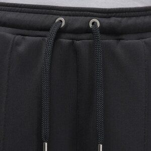 The $150 Nike Air Jordan Pants for Men in Black are a stylish and comfortable choice for various occasions including travel, activewear, parties, and casual outings. Made of soft knit fabric with an elastic waist and tapered leg style, these jogger-style pants feature a drawstring closure, side stripes, and pockets for convenience. With a polyester blend material and a 32-inch inseam, these pants are designed for performance activities like basketball, running, and weightlifting. The solid black color and Nike Air Jordan branding make them a fashionable and versatile addition to any man's wardrobe.