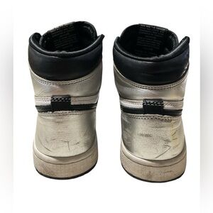 Stylish high-top sneakers with a black and silver design. Features the iconic Nike logo.