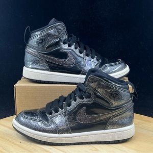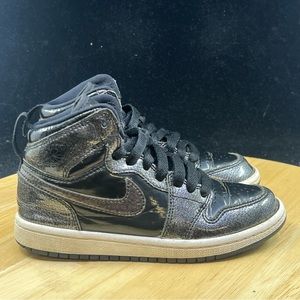 Nike Air Jordan Retro 1 High BP Youth Shoes Sz 12C Youth Glossy Black 705303-017