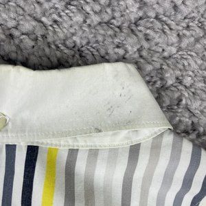 There is light yellowing on the collar and a stain. No rips or holes. Please see pictures for better details.