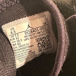 These Jordan Stay Loyal 2 sneakers are pre-owned and in Excellent Used Condition. They have been cleaned and leather has been reconditioned. These shoes are designed with a focus on comfort and style, incorporating elements from classic Jordan models. They feature a mix of materials, including leather and textile, and a visible "23" detail on the side, a nod to Michael Jordan's iconic jersey number. The Nike Air unit in the sole provides lightweight cushioning. The sneakers are available in various colorways, including black and metallic silver. They can be worn for both casual wear and basketball. Inspired by generations of Js, these kicks are a collage of cool. Design details recall decades of legendary shoes while paying homage to MJs storied career. Breathable mesh, sturdy leather and lightweight Air cushioning in the heel make it that much easier to walk in the footsteps of greatness. Colour Shown: Black/Metallic Silver Style: DQ8401-001 Benefits of Real Leather: Genuine leather offers benefits like durability, longevity, breathability, and timeless style, while also being water-resistant and easy to clean. It can develop a unique patina over time and provides a comfortable, protective fit that improves with age.