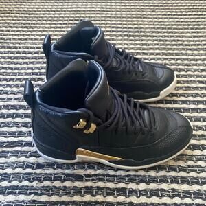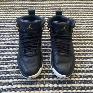 🌿Nike Air Jordan Womens Retro 12 Black Metallic Gold White Jump Man Sneakers 8