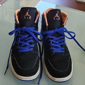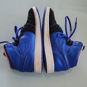 Blue leather, and black suede leather high tops. Youth size 5, so ladies size 6.5, or Mens size 5. Please see size chart. C1.7221