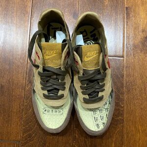 This pre-owned Nike Air Max 1 Clot Kiss of Death in Rocky Tan Red DD1870-200 is perfect for any sneakerhead. Its rare size 5.5 makes it an instant collector's item. This shoe is in great condition and perfect for any occasion.