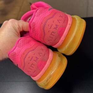 Nike Air Max 2014 Running Shoes, in a vibrant Hyper Pink with peach/cream/mango accents. Women's size 9.5.