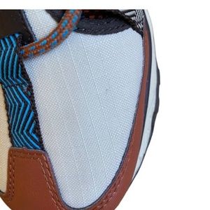 In great condition. Please note, on right shoe, a tiny loose blue thread and a tiny dot which is the mesh. Please see last two pics.