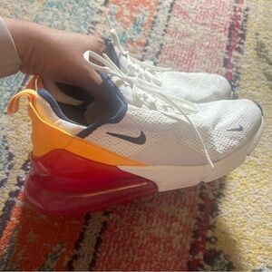 The shoe is also made of a lightweight but durable fabric making them comfortable to wear, even on hot days. The fabric has a soft, knit-like pattern which enhances its style. Both the Nike Swoosh logo and the Air Max 270 logo are incorporated into the design, making it easy to recognize as a Nike shoe.
