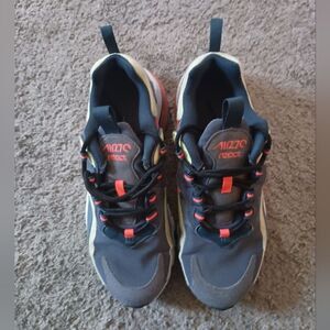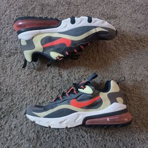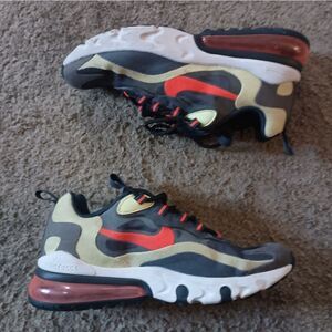 Nike Air Max 270 React Sneakers Grade School Size 5Y, BQ0103-015 PRE-OWNED. In good condition, gently used, light scuffs of the air bubbles. Sneakers do have replacement laces. Fast shipping via USPS Priority Mail.
