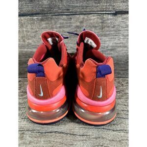 The Nike Air Max 270 React Mystic Red showcases a vibrant mix of red hues and a bold, multi-material design.