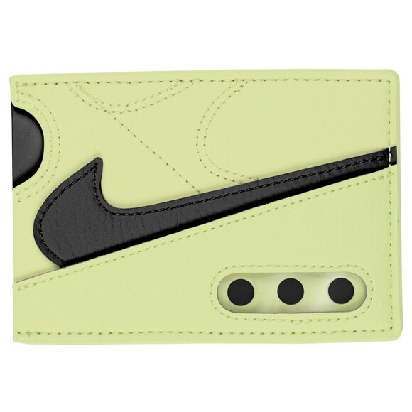 The design of this wallet was inspired by a shoe that has reigned supreme since the '90s. It pays homage to the iconic '90s shoe that became a sneakerhead staple. The wallet features a sleeve for storing cash and five slots for your cards and ID.