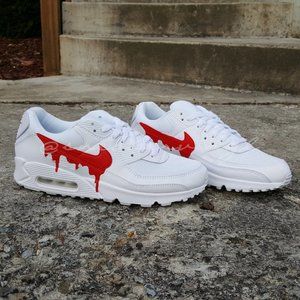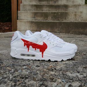 Nike Air Max 90 Red Paint Drip Custom NWT. These shoes are made to order. Please allow 7 days for shipment. You can also check these shoes out on www.sneakervinyl.com