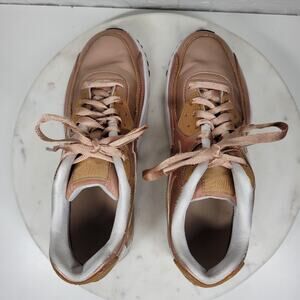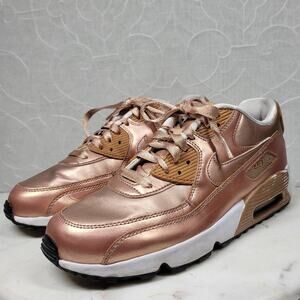 Nike Air Max 90 SE Athletic Shoes Youth 7 Rose Gold Leather Lace Up Comfortable
