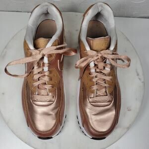 Nike Air Max 90 SE Girls 7Y Metallic Pack Bronze Leather Athletic Shoe Sneaker