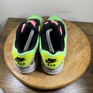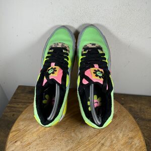 Nike Air Max 90 SE Shoes Womens Size 9.5 Green Neon Animal Camo Smile Face