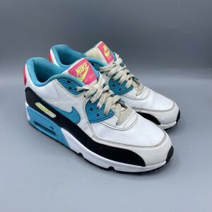 Nike Air Max 90 Sneakers White Blue Black Pink 833376-104 GS Size 6.5Y