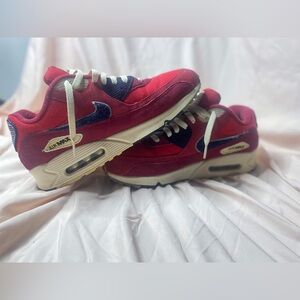 The Nike Air Max 90 Varsity Pack University Red size 9.5 is a classic sneaker that combines style and comfort. The upper is made of premium leather and mesh, with a vibrant red color that stands out. The iconic Nike swoosh is featured on the sides, while the Air Max unit in the sole provides cushioning and support. The release date for this shoe was May 18th, 2018. In great preowned condition and have any questions. Feel free to ask. J3