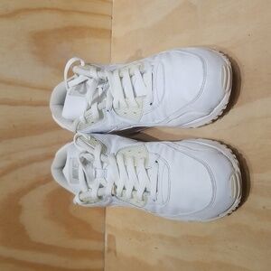 Classic Nike Air Max sneakers in white and cream. Comfortable and stylish design.