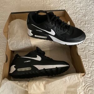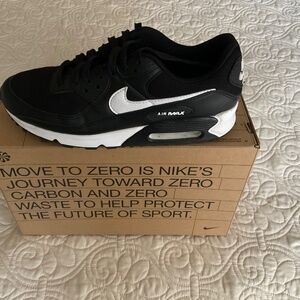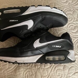 Nike Air Max 90 black/white/black sneakers with Air Max heel. Nearly new only worn once with no evidence .Due to lighting on the pictures the white part is white the light made it look dingy and they are not. Make an offer.