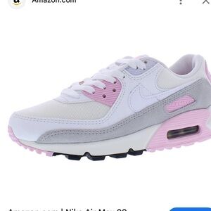 Stylish Nike Air Max 90 sneakers for women. Features a pink, white, and gray design. Ideal for casual wear.