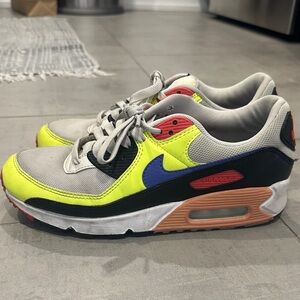 Leather, mesh, and textile upper with rubber sole. Made in Indonesia. Lace-up front. Molded NIKE AIR plastic logo at heel and eye stays. Floating Swoosh logo. Padded low-cut collar. Plush midsole. Nike Max Air unit in heel for support and cushioning.