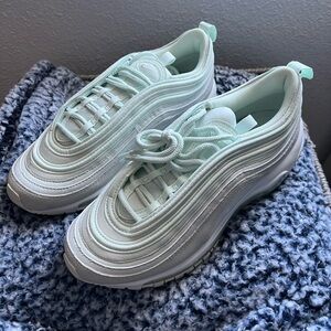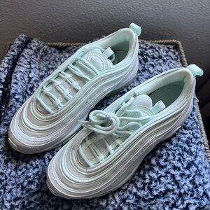 Stylish mint green sneakers with a sleek design. Perfect for casual wear.