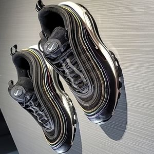 Nike Air Max 97 Black Leather&Mesh W/ Yellow/Green/Purple/Red Stitch Wo…