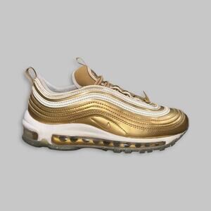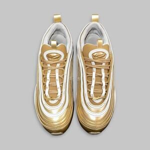 Note: These Nike Air Max 97s in “Metallic Gold” deliver a bold, timeless look with luxurious shine and lasting comfort. Perfect for casual wear or adding a statement edge to any outfit. Please review all photos for condition details, as colors may vary slightly due to lighting.