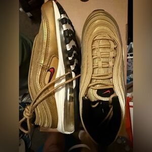 Nike Air Max 97 Og Sneakers in Metallic Gold, Varsity Red, Black, & White 6.5