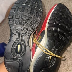 Bold Nike Air Max 97 with striking red and gold accents. Eye-catching design for standout style.