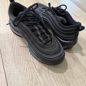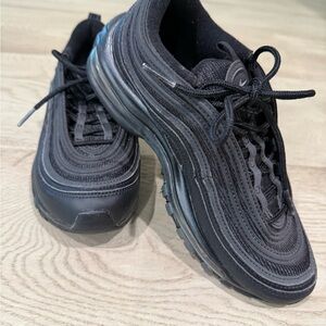 Experience the perfect blend of style and comfort with these Nike athletic shoes, featuring a sleek black design and a cushioned sole for optimal support. The modern silhouette and wave-like patterns add a touch of sophistication, making them ideal for both athletic activities and casual outings. Enjoy the secure fit of the traditional lace-up closure, ensuring your feet stay comfortable all day long.