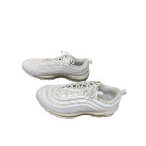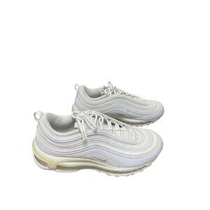 The Nike Air Max 97 womans low top features a sleek design with a full-length air unit for ultimate cushioning. Its white colorway offers a clean, modern look. In overall good condition in and out with Minor sole discoloration pointed in pics and no other defects noted. SKU 9484