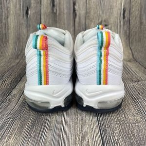New with original box Nike Air Max 97 White/Thunder Blue/Green Noise/Crimson. Womens sizes. Subtract 1.5 sizes to convert to mens