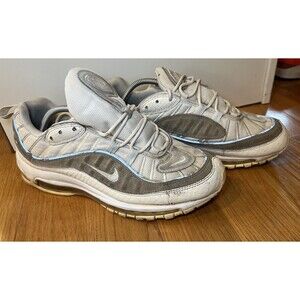 The Nike Air Max 98 Snakeskin in Sail Sepia Stone is a stylish and fashionable sneaker designed for men. This low top shoe features a lace-up closure, standard shoe width, and a unique snakeskin upper material. With a classic Nike Air Max design and a color scheme of white and brown, this shoe is a versatile option for everyday wear. The 2018 release year makes it a relatively new addition to the Nike Air Max product line, offering a modern and comfortable athletic shoe option for men.