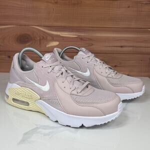 Stylish footwear for everyday wear: Nike Air Max Excee sneakers. These trendy women's sneakers feature a sleek mauve upper accented by a white Nike swoosh, complemented by a white midsole and a touch of yellow on the heel.