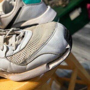 Step into style and comfort with the Nike Air Max Excee Pure Platinum Sneakers. Inspired by the iconic Air Max 90, these sneakers have been designed with a modern twist while maintaining that classic look. The sleek pure platinum colorway is accented by contrasting black details and a touch of teal, making these shoes a versatile addition to any wardrobe. Crafted with a combination of mesh, suede, and synthetic leather, these shoes not only boast durability but also provide excellent ventilation and support. The foam midsole and Max Air unit in the heel ensure responsive cushioning, making every step you take a walk on clouds. The rubber outsole offers dependable traction, making them perfect for both casual wear and active lifestyles. Elevate your sneaker game with the elegant and timeless Nike Air Max Excee Pure Platinum Sneakers.