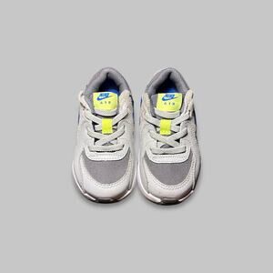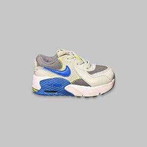 Note: These Nike Air Max Excee sneakers deliver sporty style and everyday comfort for your little one. The vibrant Volt and Blue details pop against a neutral gray base. Please review all photos for condition and color accuracy, as lighting may slightly alter the appearance.