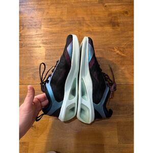 Get ready to fly in style with these Nike Air Max FLY women's sneakers! These shoes are in very good condition, with a sleek black and dark gray design accented by pops of pink and light teal. Please see the photos for a closer look at their condition.