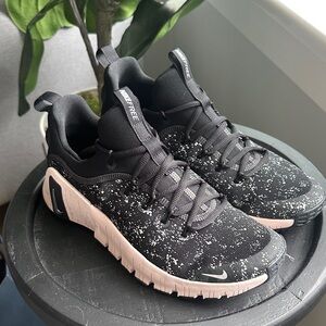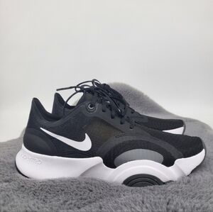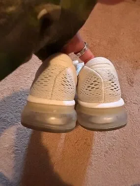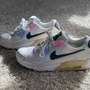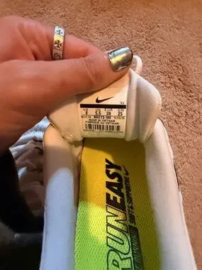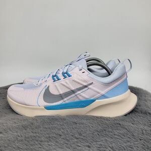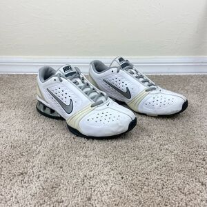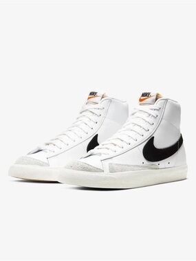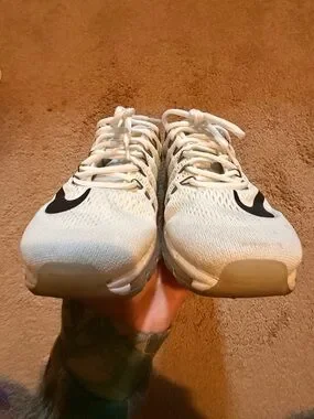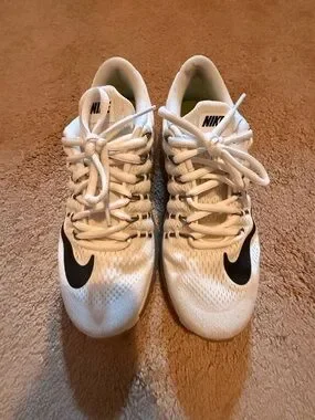 Lightweight Nike trainers. Breathable white mesh upper. Contrasting black Swoosh accents. Secure lace-up fit. Sporty everyday style.