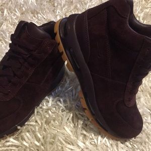 Burgundy Suede Nike boots . NEVER WORN . MENS SIZE 8 .