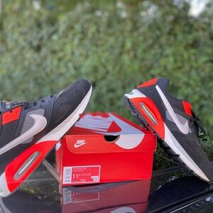 Stylish Nike Air Max IVO with black upper and red accents. Features a white swoosh.