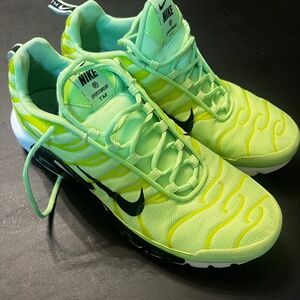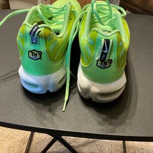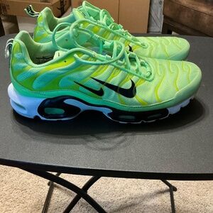 Selling a pair of Nike air max plus Tn. The color scheme is volt, black and white. Shoes are in good condition.